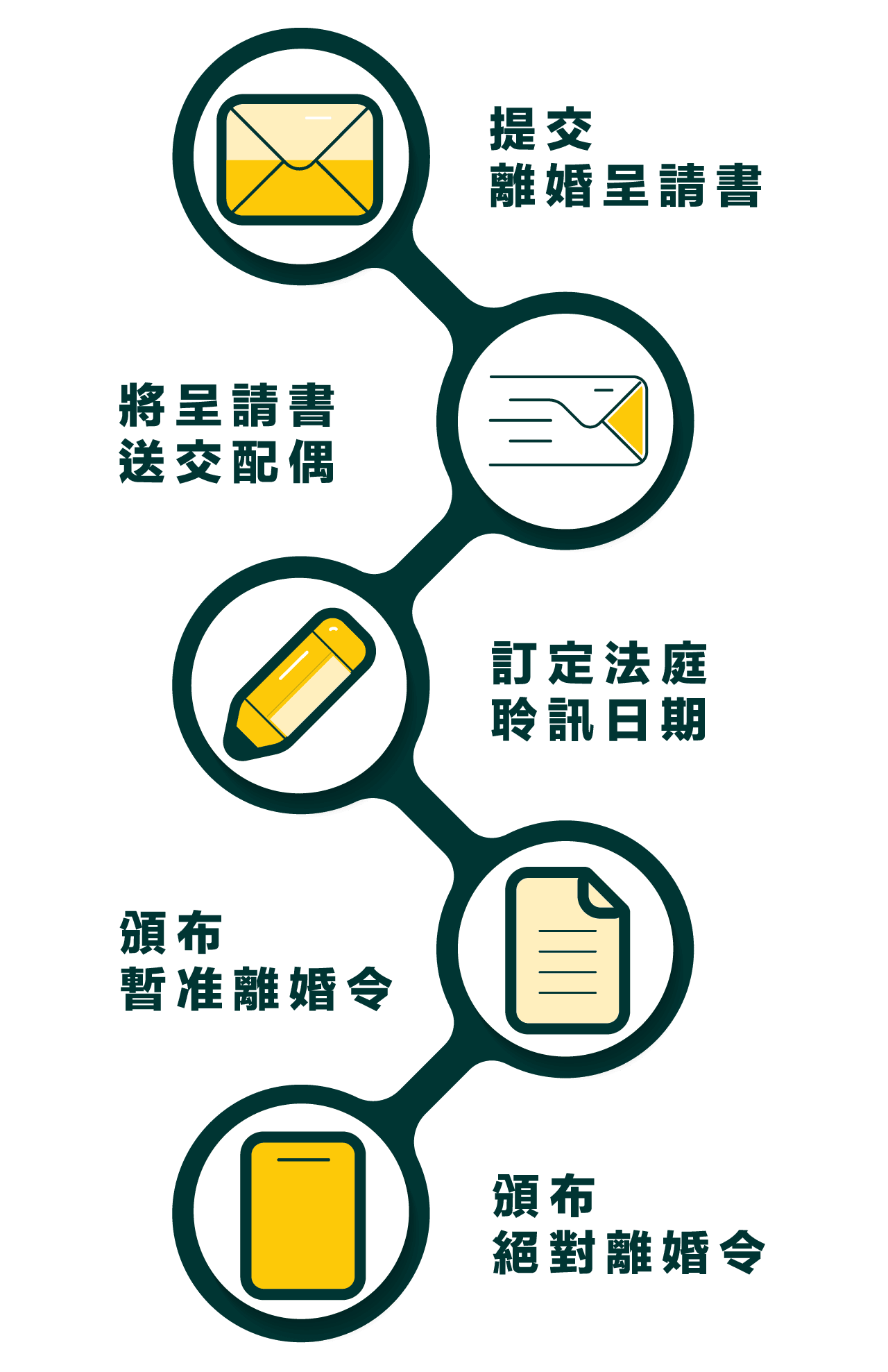 需遞交「離婚呈請書」、「關於子女安排」及「財務報表」等⋯⋯
